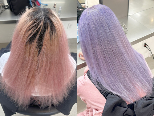 複雑履歴もお任せ!淡い紫カラーで推し活ヘアに