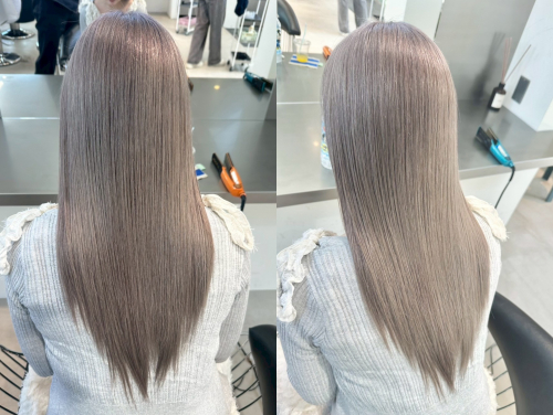 【2回ブリーチで叶える!透明感たっぷりのグレージュカラー】