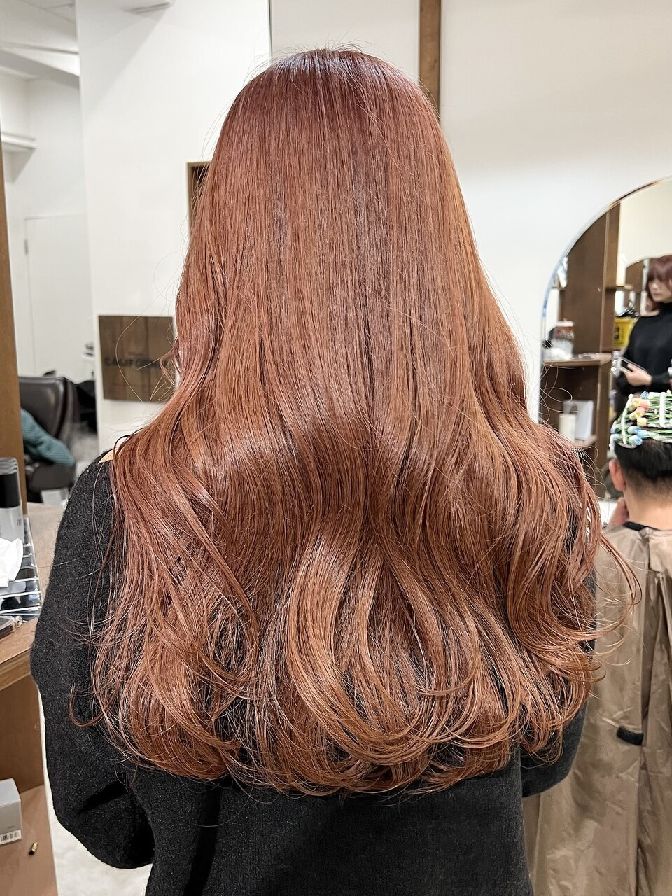 ブリーチ無しのカラーを2回行い、ワンカラーよりも透明感のある赤みのない仕上がりに*明るくしたいけどブリーチはしたくないという方には、ライトニングブースターもオススメ!+3500変更可◎カットは+¥3,300で追加可*(ロング料金 鎖骨下¥770 胸下¥1100 ヘソ¥5500)