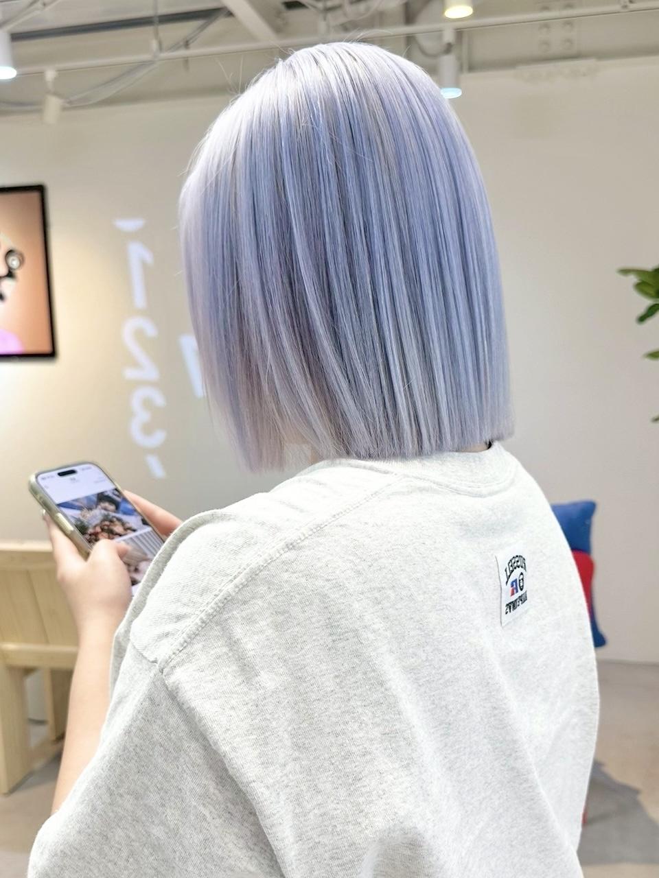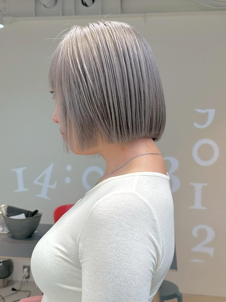 シルバーカラー×ミニボブ|ブリーチベースでつくる最...