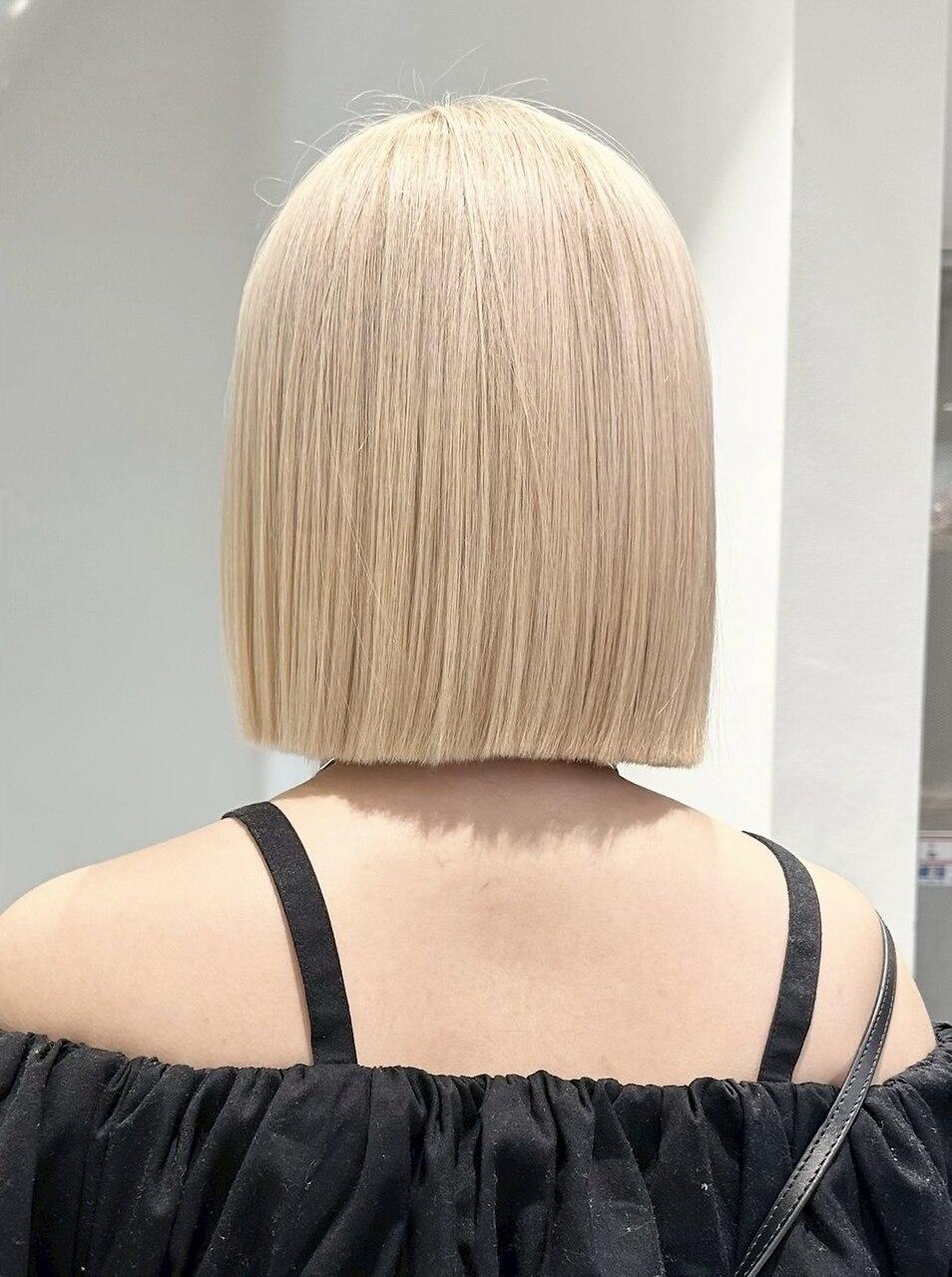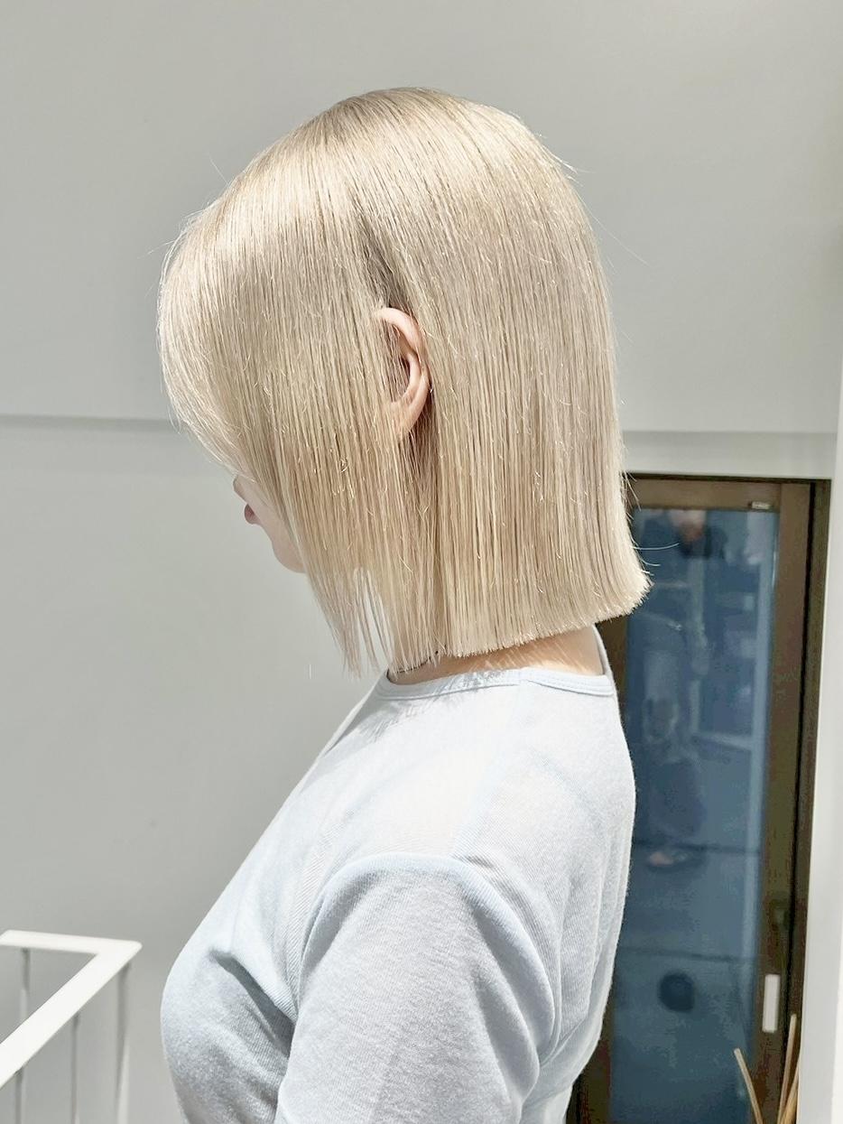 ぷつんとボブ × ブロンドヘア|ブリーチ2回で透明...