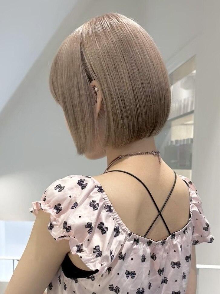 ぷつんとボブ×ミルクティーベージュ|ブリーチカラー...