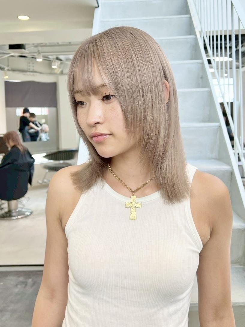 レイヤーミディ×ミルクティーブロンド