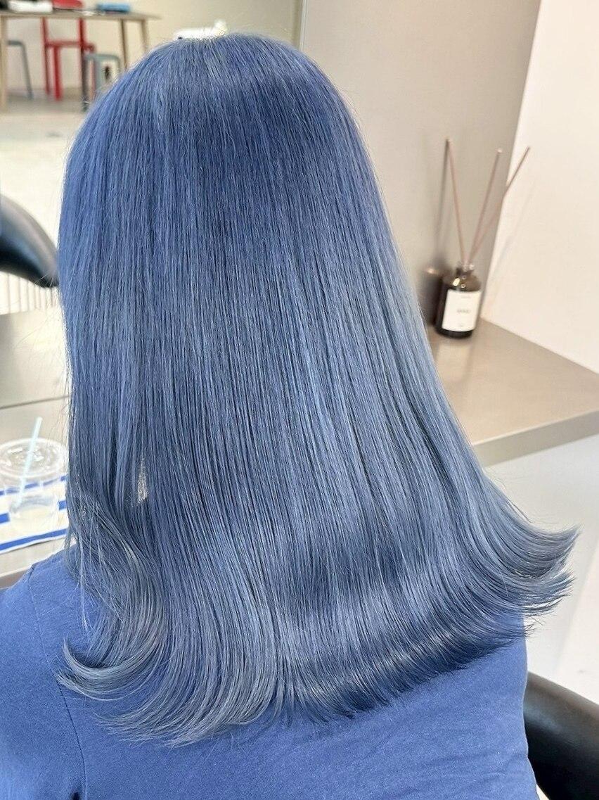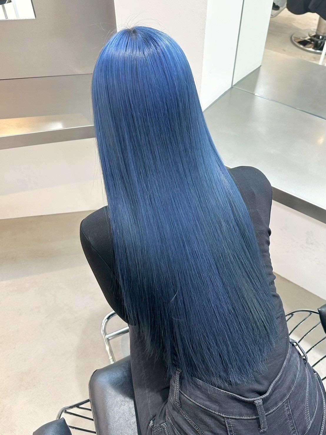 ブルーカラー×ストレートロング|後ろ姿まで映えるハ...