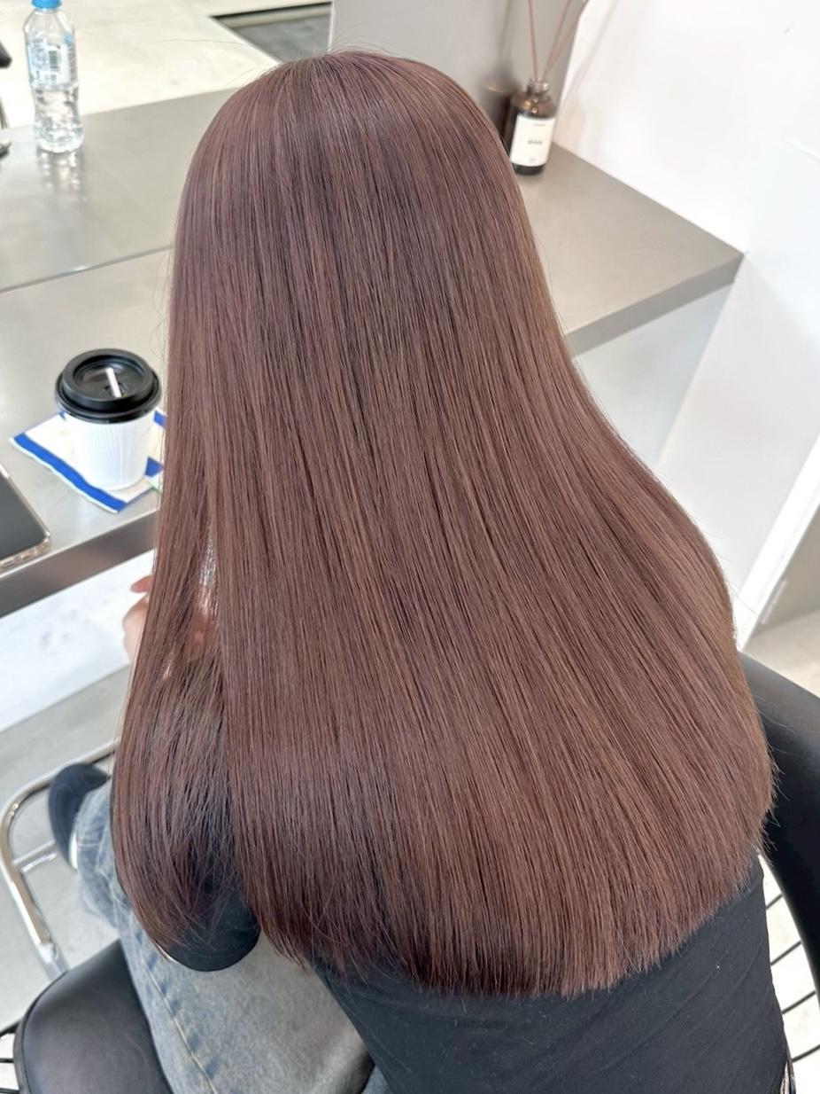 ストレートロング × ピンクブラウン|濃いめカラー...