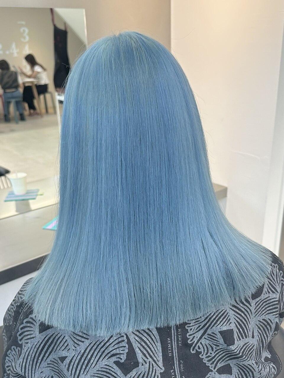 ペールブルー×ストレートミディアム|ブリーチ2回以...