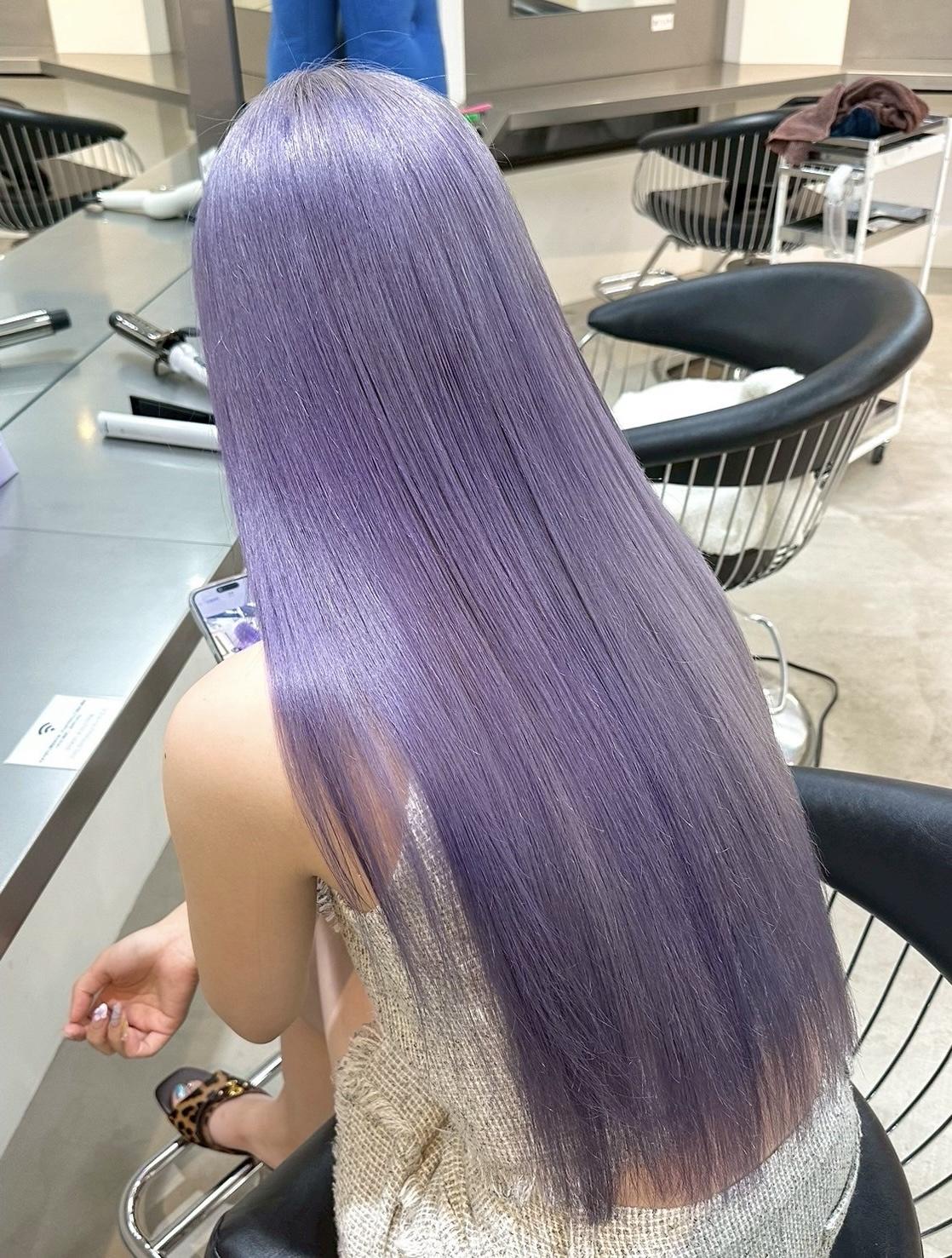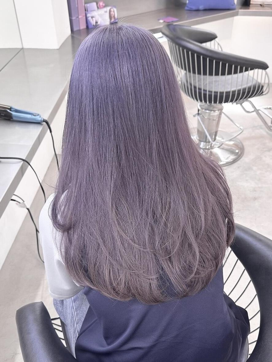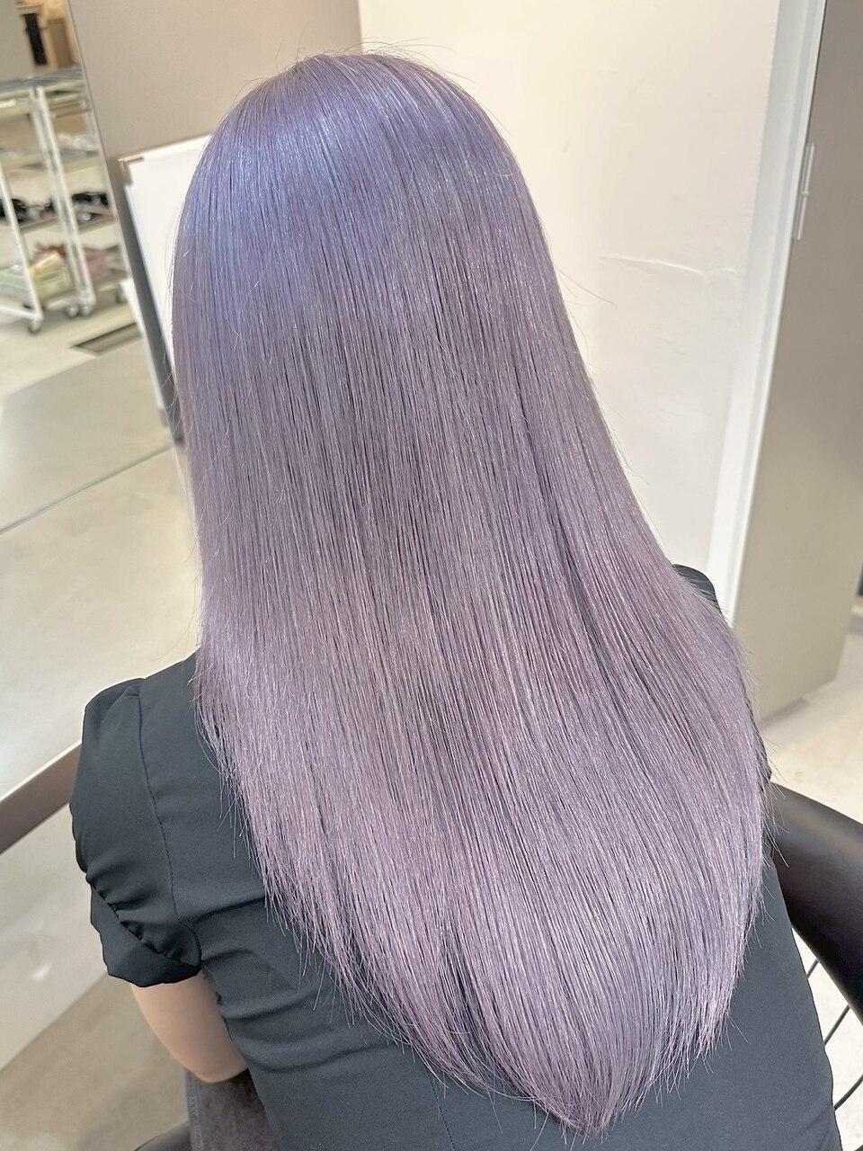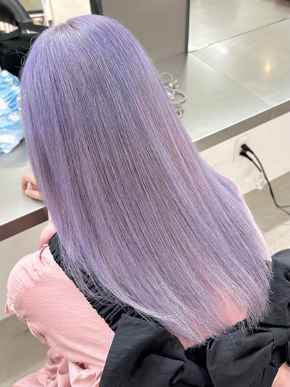 レイヤーロング × 淡パープル|毛先のデザインカラ...