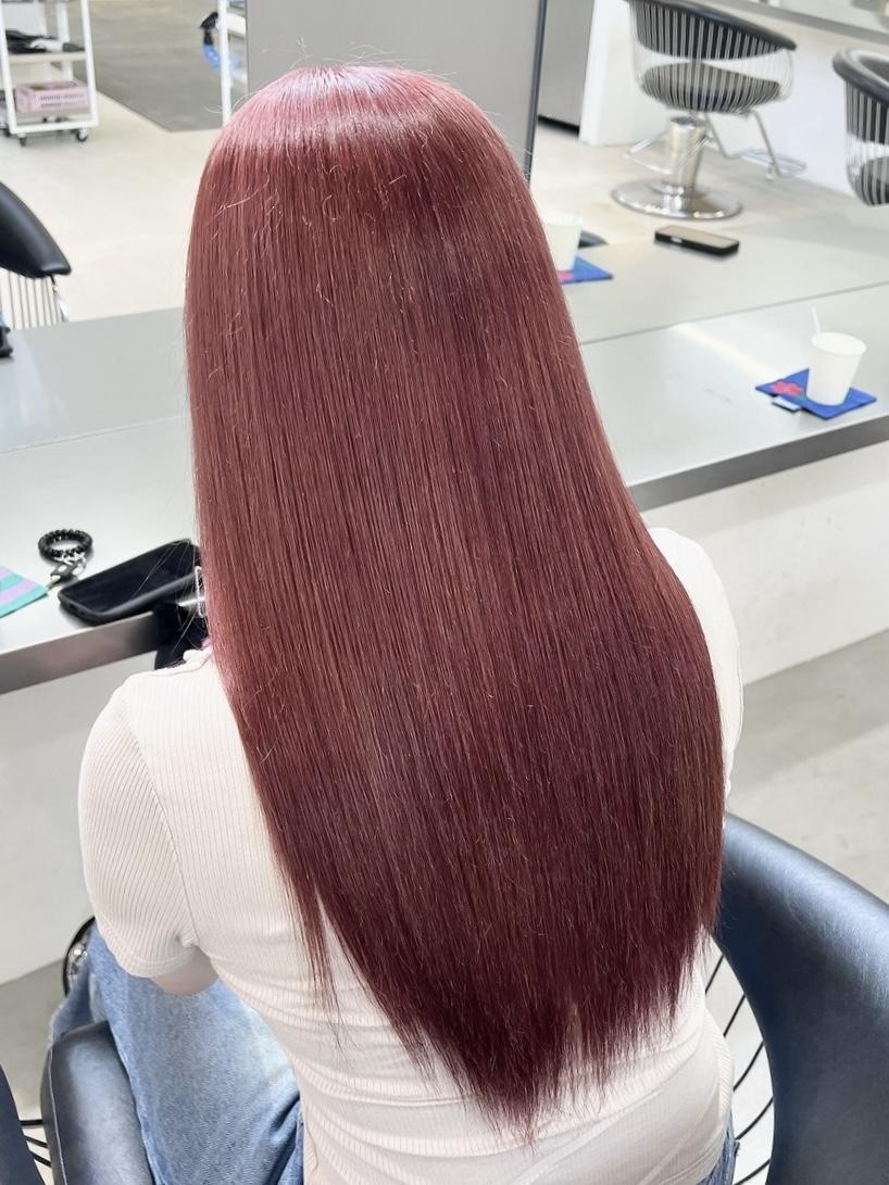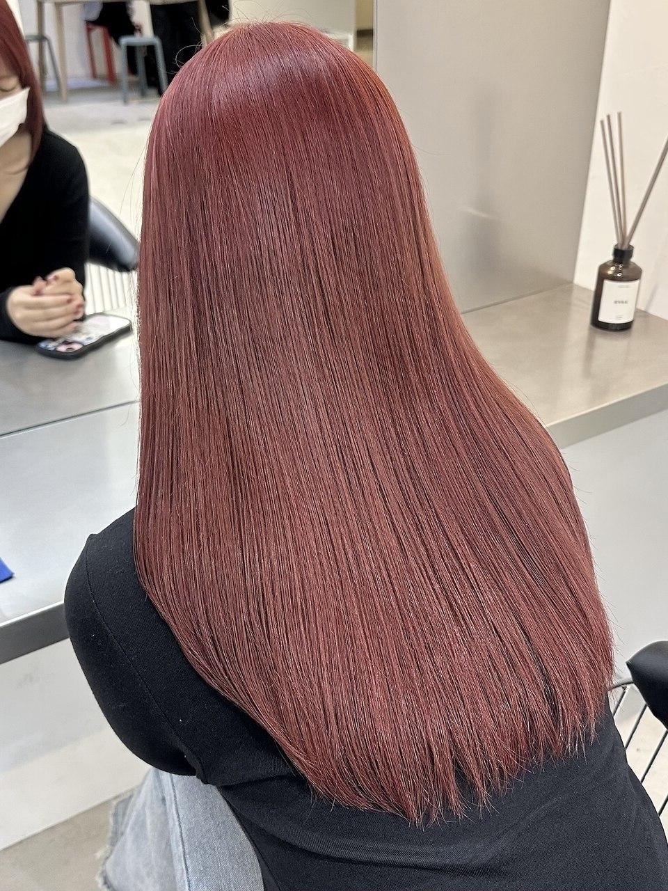 ブリーチ1回でつくる赤みピンクブラウン|艶ロングス...